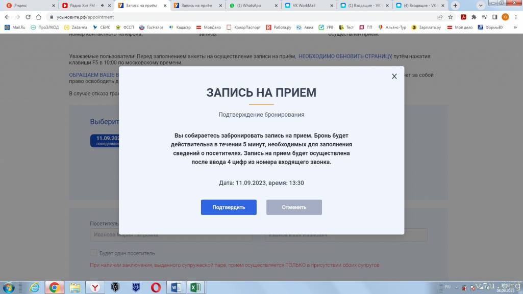 Сегодня 4 раза поймала время а запись не дает сделать (заполнить форму) даже фио не дает заполнить и телефон а без этого дальше не подтвердить запись же...