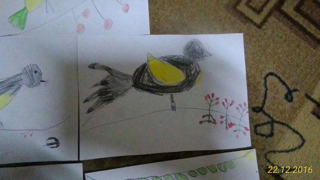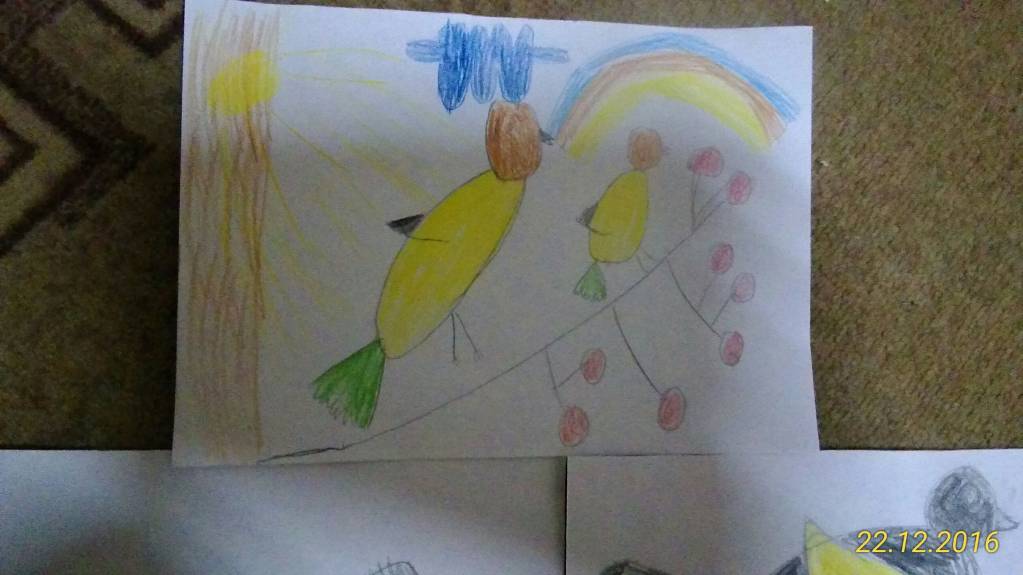 А это от моей почти 6летки. Мама и дочка птички-синички. В садике рисовали