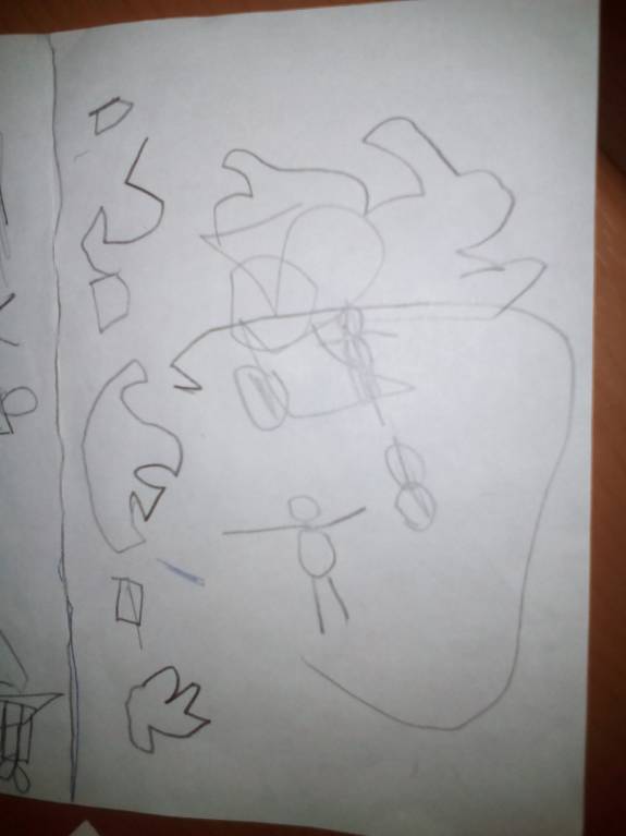 на втором рисунке чудовища,монстры,которыми он хочет напугать меня,Ксюшу и человечков...