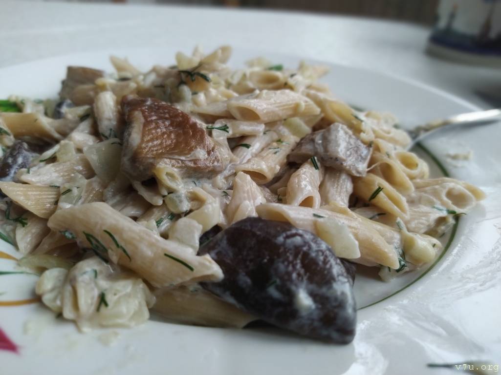 А у нас сегодня грибы с макаронами(репчатым луком,чесноком,укропом) в сливках,вкусняяятина))