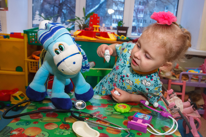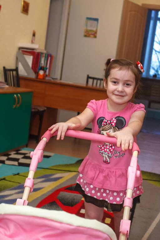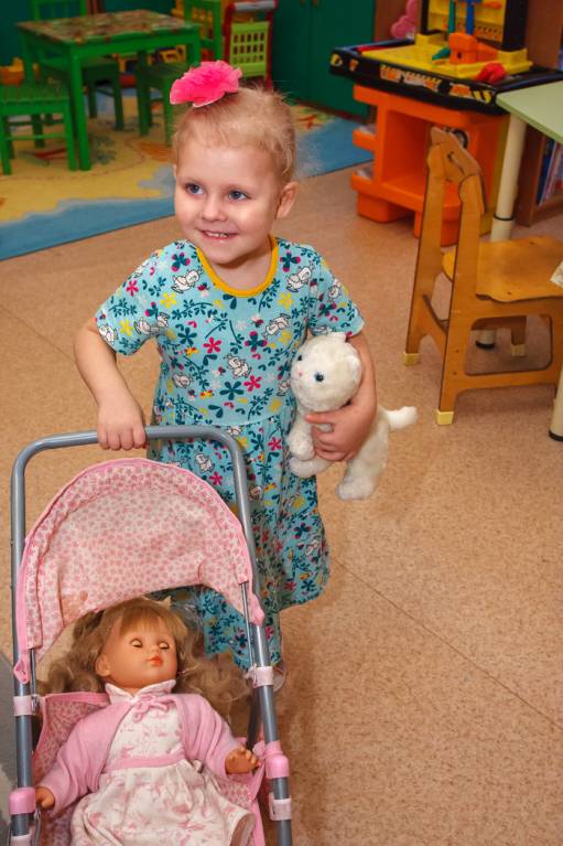 Варвара только-только приехала в Томск. Пока что она осваивается среди ребят, осматривается и больше играет одна. Хотя, по ощущениям, девочка открытая и общительная. Варенька уже хорошо говорит и знает, что такое «здравствуйте» и «спасибо». Она самая младшая в группе, но сама одевается, у нее нет проблемы с засыпанием и едой. У Вари пока не сформировано устойчивое внимание, долго слушать сказку или сидеть на месте еще не может. Но она ведь же маленькая. В марте девочке исполнится три года.