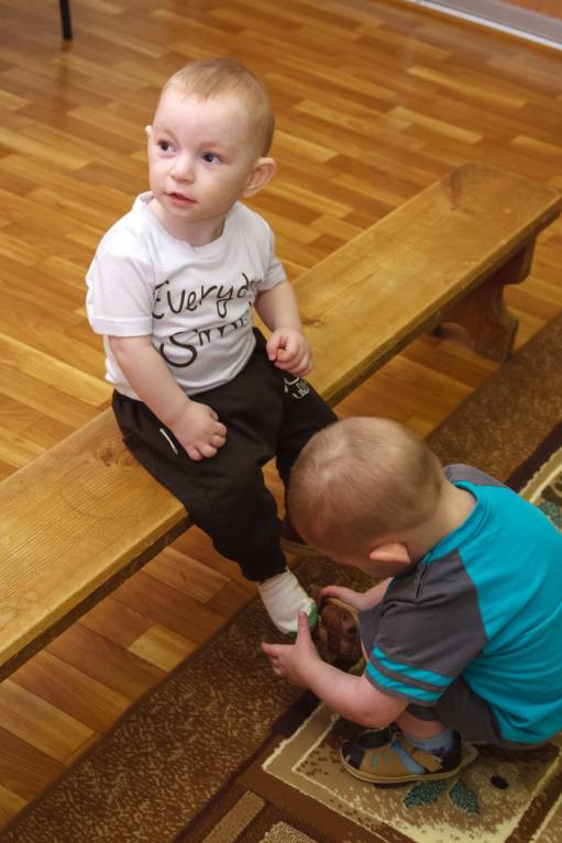Ее младшие братья Саша и Сережа, поиграв с игрушками, на автоматизме стали собирать их и складывать на место. Похоже, что эти мальчишки приучены к порядку именно старшей сестрой, так как взрослые люди в жизни маленькой семьи, пока разлученной недетскими обстоятельствами, присутствовали номинально. Вместо отцов в свидетельствах о рождении троих детей стоят прочерки. Органы опеки озаботились жизнью этих ребят, так как мать не следила за ними и оставляла на долгое время одних без еды и в холоде. Может поэтому у Сережи еще пока ощущается дефицит массы тела. Саша и Оксана здоровее своего младшего братишки.