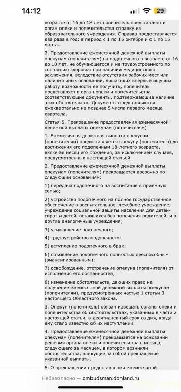 Лилия, дети были на полном гос. По их местному закону за это время деньги не платят. Но она, видимо, получала.Лилия Лада: 05 фев 2025, 18:33Вряд ли речь о пенсии с номинального. Любой адвокат доказал бы, что отчитываться за эти средства нужно только распиской. Другое дело, если расписка включает в себя одежду, обувь и другие товары длительного пользования, а в наличии только заношенные вещи, собранные благотворительно. Или деньги были сняты с накопительных счетов детей, или получала ЛОУ и теперь эту сумму требуют вернуть.