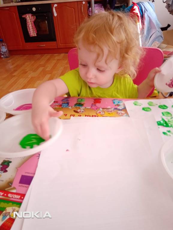 Ещё очень любит рисовать, но пока с эти туго, т.к. не получается всё так организовать, чтобы не отмывать всё кругом. Хотя на даче с этим проще, там есть улица и шланг.