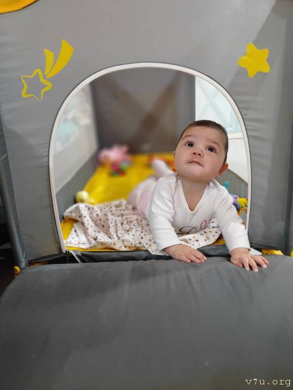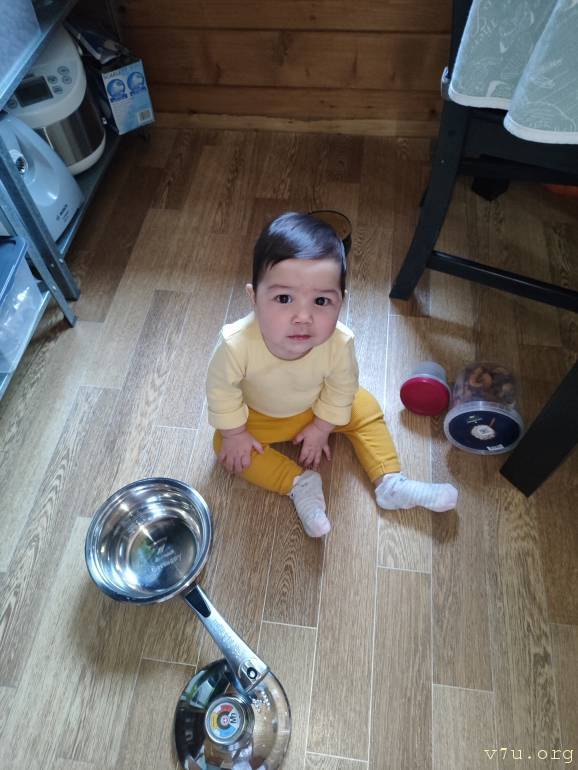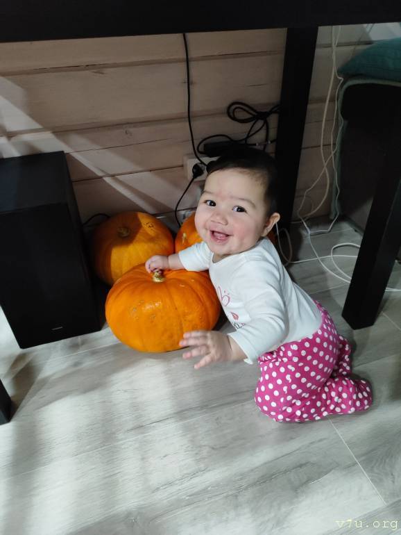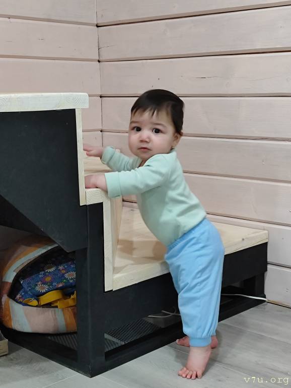 Стала реагировать на строгий голос, если куда-то лезет, куда не надо. Правда сначала замрет, сядет, немного подумает и ползёт с радостным визгом к тому, кто строжит
