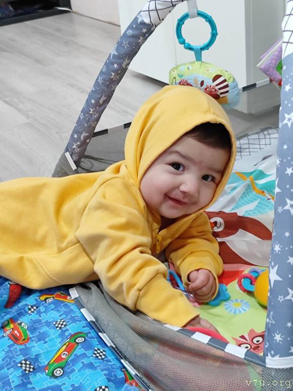 Что-то болтает на своём тарабарском, подпевает песенкам. Залипает на рекламе и на заставках к мультикам.