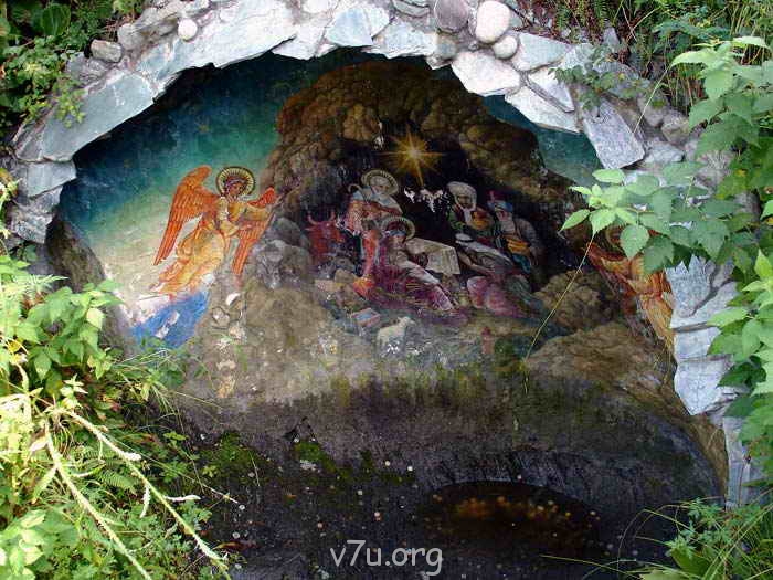 Это у нас. Есть монастырь, и при нем такой маааааленький чудо-храм. Там еще есть старинная икона , написанная на скале, в нише пещеры. Все на фотках.