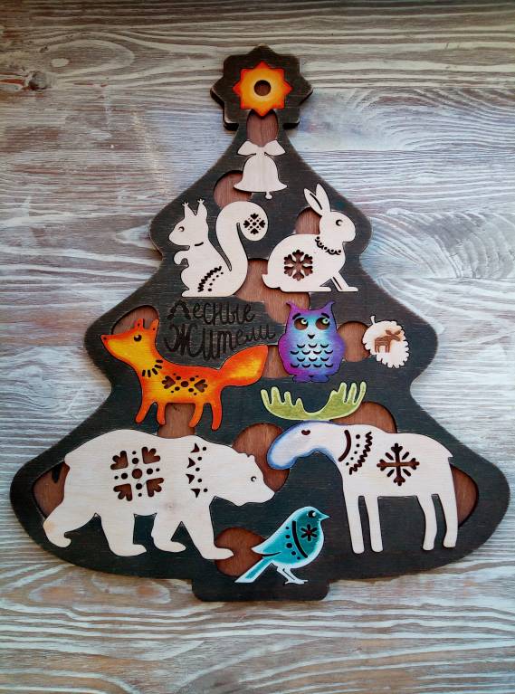 Новинка этого года-елка-пазл для игры и раскрашивания, высота 35 см, звери вынимаются.))200р