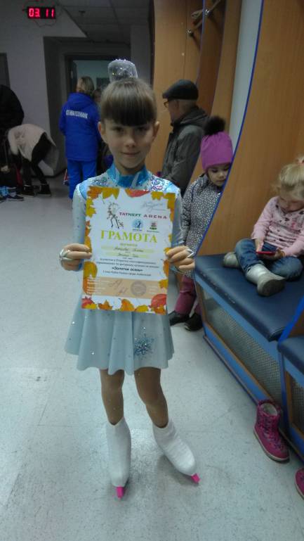 Вчера состоялись первые соревнования у Ралины.Переживала за нее очень.Шестое место из девяти, думаю, для начала неплохо)) откатала она хорошо, только элементов у соперниц было больше..