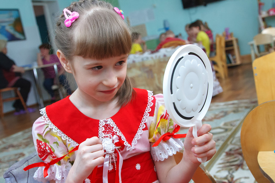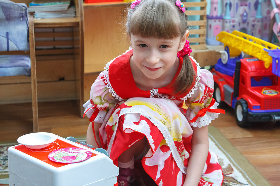 - Сейчас Олеся стала совсем другой по сравнению с той жесткой ситуацией, которую ей пришлось вынести после возврата, - рассказывает логопед детского центра. – Сейчас мы ее зовем принцесской, потому что, когда ушло состояние закрытой буки, выяснилось, что она любит пококетничать. Олеся - смешливый ребенок, она с упоением рассказывает разные случаи, которые ее впечатлили, например, как мальчишки залезли на прогулке в сугроб и не могли из него вылезти. Она очень любит эстрадную музыку, услышав которую тут же начинает танцевать, выплескивая всевозможные эмоции и энергию.