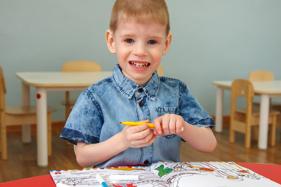Несмотря на свою не слишком понятную речь, Артем не против поговорить. Он артистичный, любит танцевать и петь. Тема – активный парень и совсем не безнадежный. Форму, цвет, количество – все это он знает, что было виртуозно продемонстрировано перед фотокамерой. Артем правильно собрал пирамидку, называя все цвета и размеры пластмассовых колец, которые он нанизал на центральный штырек с последовательностью, не вызвавшей у парня особенных затруднений. Воспитатели рассказывают, что занимается Тема с увлечением, он пытается рисовать и складывать конструктор. Охотно Артем откликнулся и на все предложения фотографа Валерий Касаткин. Надо принести стульчик – несет. Нужно съехать с горки – с удовольствием! По характеру Тема любит быть первым, он активный и подвижный мальчик. Нянечки говорят, что из еды Артем не любит только запеканку. Со всеми другими блюдами у ребенка проблем не возникает.
