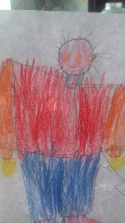 В семье четыре дня,8 лет,нарисовал нас с мужем и себя,я слева,муж справа,ребенок посередине,на вопрос,что это падает с неба,ответил,что это радостный дождь.