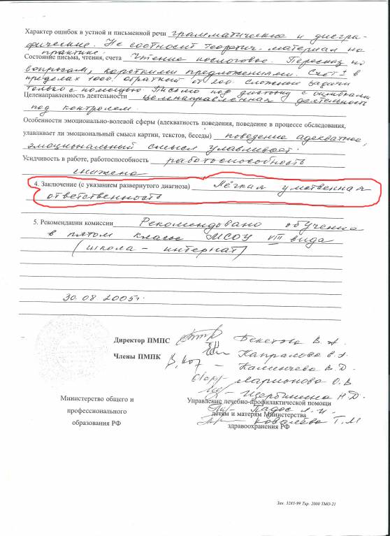 Игорь Сергеев, Это я помню еще с давних времен Проблема там в том, что председатель ПМПК пишет диагноз. а другие расписываются, не читая вовсе)