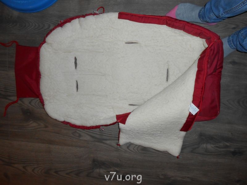 конверт на овчине, был выстиран в горячей воде, овчина свалялась, но вполне теплый, выглядит нормально.