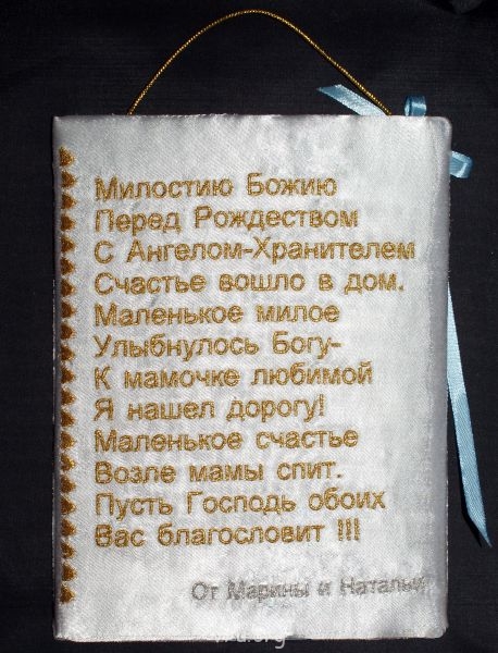 Ну вот, с Мариной вместе сотворили мягкую открыточку. На стороне. где малыш-бархат, на той, где слова- атлас. Стихи Марины, остальное понятно