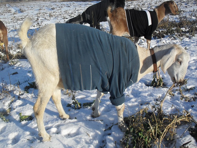 а мы еще вымя в колготки х/б подвязываем, чтоб не поцарапали. и у нас у старшей вислое вымя, тоже подвязываем, чтобы ей бегать удобно было. а зимой в колготки еще шерстяную шапочку подшиваем, чтоб не застудили