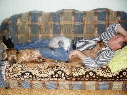 Отправлено спустя 3 минуты 46 секунд: Отправлено спустя 1 минуту 41 секунду: а это наш папа отдыхает, обложенный собаками и с козленком под мышкой