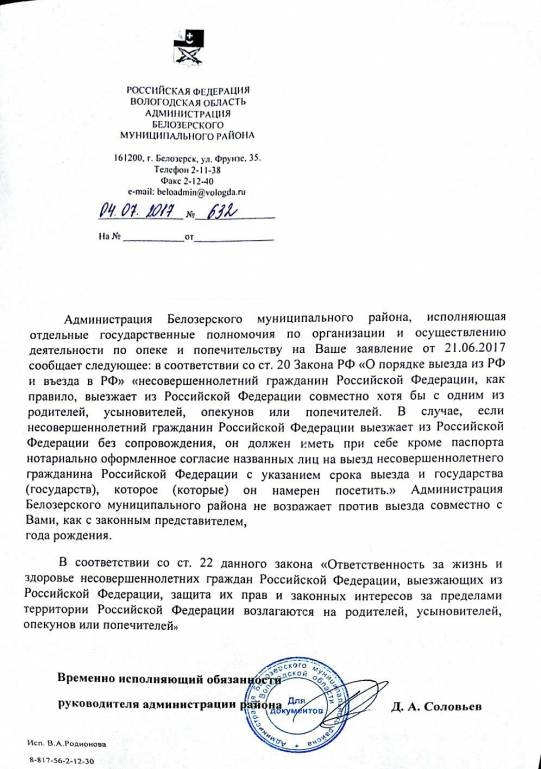 Федеральный закон от 15.08.1996 N 114-ФЗ (ред. от 01.05.2019) "О порядке выезда из Российской Федерации и въезда в Российскую Федерацию"Гаргамелька: 05 июн 2019, 06:58 Подскажите какой именно закон, хочу почитать, а то в опеке утверждают, что они согласие должны дать.., а они не дадут,т.к. это не в интересах ребёнка и моё педагогическое ( логопедии) не позволит обучаться математике...