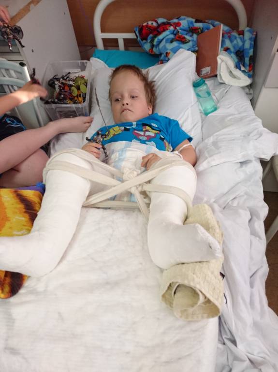 Но меня больше даже колено волновало. Или бедро. Короче у нее нога права постоянно поднимается и в согнутом положении. Бобсь контрактур.