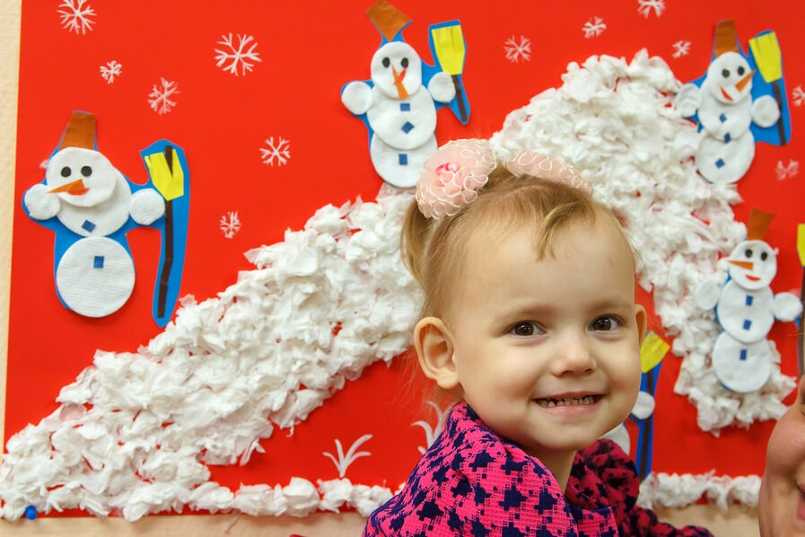 Нарядная Лера выскочила на фотосъемки во время нашей беседы с врачом детского учреждения.