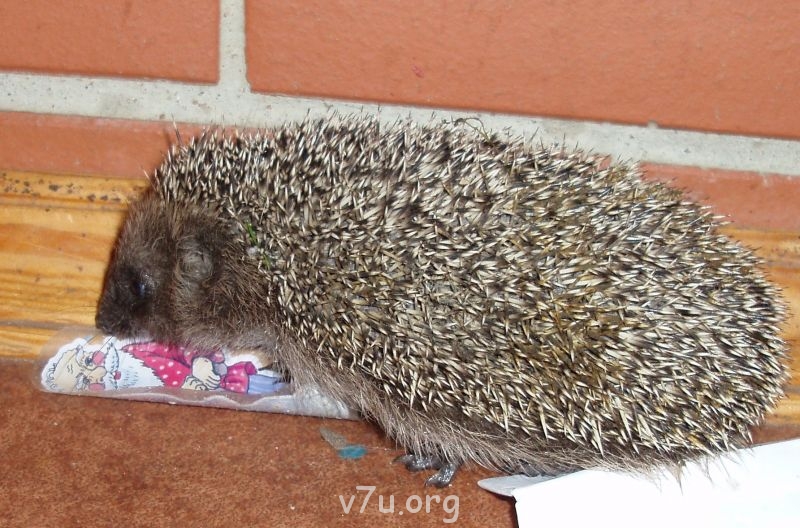 а этот подросший уже, но к нам постоянно ходят ежи и ежата - в прошлый раз примерно такая же кроха забежала ))