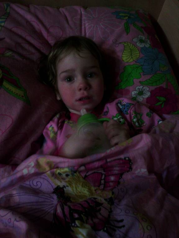 Днём сегодня спать не стала,а под вечер начала настырничать,недели 2назад, просто истерила,выла.А сейчас попыталась, у неё не долго получилось,сначала я присоединилась,а потом собака наша(она у нас петь умеет).У. настырки сразу мастерства то поубавилось.