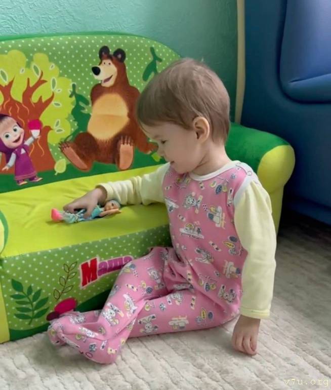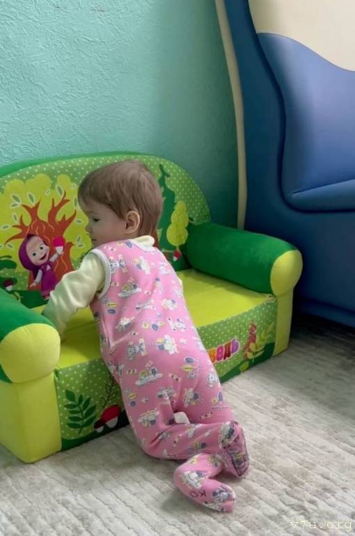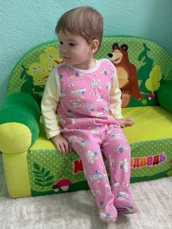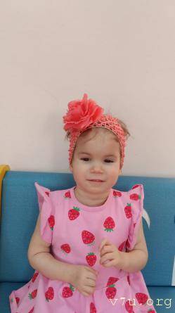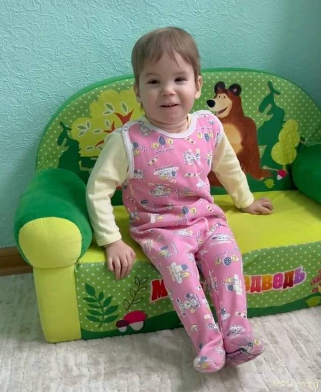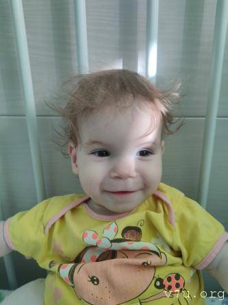 Характер: Девочка спокойная, ласковая, эмоционально реагирует на общение со взрослыми. Любит играть с погремушками и звучащими игрушками. Кушает с помощью взрослого, сон спокойный. Активная, но движения ограничены в связи с основным заболеванием.