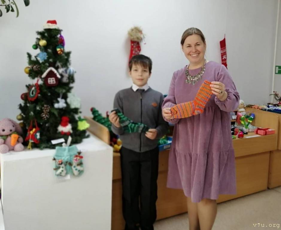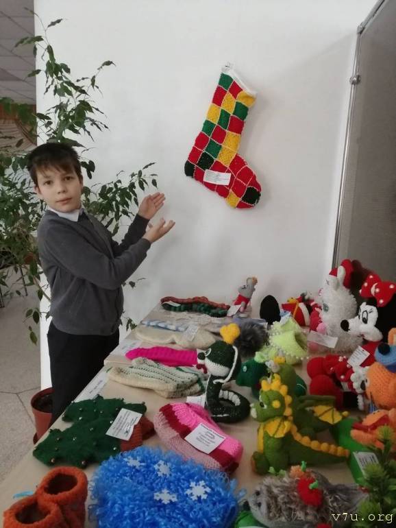 Костя и его носок, связанный из бабушкиных квадратов, был назван носком-рекордсменоми занял 1 место в номинации "Носок XXXL".