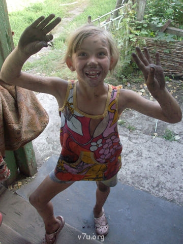 Дома было не легче. Я постоянно сидела на валерьянке. Вот хотя-бы один день... Мою посуду, Люся "вылазит из шкуры". Я и так, и так. Играть не хочет, мыть со мной не хочет. Просто слетела с тормозов. Начала швырять кубики мне в таз. "Люся, перестань"... Толкает меня с разбегу в спину. Ничем отвлечь не могу, просто провоцирует... "Так, говорю, поиграй на улице, а я посуду домою"...Сгребла её и вытащила на крыльцо, а дверь на крючок. Подняла там такой вой, ногами по двери колотит. Ну, я посуду домыла и впустила её. Она такая вся разъярённая -"Ты меня не пускала!!!"..."Да, не пускала. Мне надо было домыть посуду, а ты что попало делаешь". А её колбасит -"А ты меня ремнем выпори, а ты меня убей, кишки мне выпусти! А я сейчас сама себе кишки выпущу!"... И всякую дрянь в таком духе. Я ей- "Успокойся и не говори гадости!" А она пуще того. Я взяла воду в рот и как в неё брызну, прямо в лицо! Аж захлебнулась, но немного затихла. Вроде, мир настал...Я взяла таз и пошла к колонке стирать её бельишко. Выплывает из дома...подошла, стоит, смотрит. На ногах галоши детские. Смотрела, смотрела, раз ногой мне в таз для полоскания. И выдернула ногу. Галош полный, в тазу грязь. Воду поменяла, поругалась немного, стираю дальше. Вроде, нормально стоит, разговаривает. Потом примолкла. Я не успела сообразить, а она галошу с ноги -хвать, и всю эту воду грязную мне в таз с постиранным и выполощенным бельём вылила! Ах, ты... Я хватаю голой рукой куст крапивы, растущий рядом, и её этой крапивой по голым ногам! Взвизгнула она, как кошка, которой на хвост наступили, отскочила -"Ты меня крапивой!..." "Да, а что мне ещё с тобой делать? А крапивой -чувствительно и для ног полезно"... Выполоскала бельё по новой и ушла в огород успокаиваться. Смотрю - плывёт, как лебедь белая... Такая вся хорошая... "Ты что делаешь?" "Огурцы пропалываю". "А можно, я тоже?" "Пожалуйста"... И всё, нормальный, спокойный (почти) ребёнок. И так каждый день в течение нескольких месяцев.
