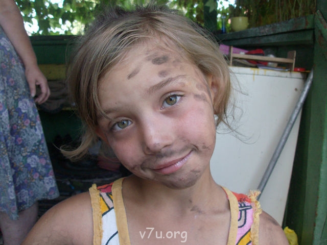 А уж деревья все наши были! Только отвернусь, а она уже на соседской черёмухе на самом верху болтается! Вся в царапинах, синяках мелких! Хорошо, что село, всё на виду, а то меня привлекли бы за избиение ребёнка... Как вечер, достаю спичку с ваткой, кастелань и смазываю новые "боевые раны". Так вся и ходила - в красную крапинку и полосочку.