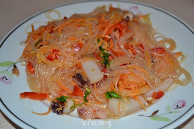 12.Фунчоза настоящая (фунчоза, черная редька, говядина, морковь, огурец, чеснок, болгарский перчик, лук, соус Лаза)