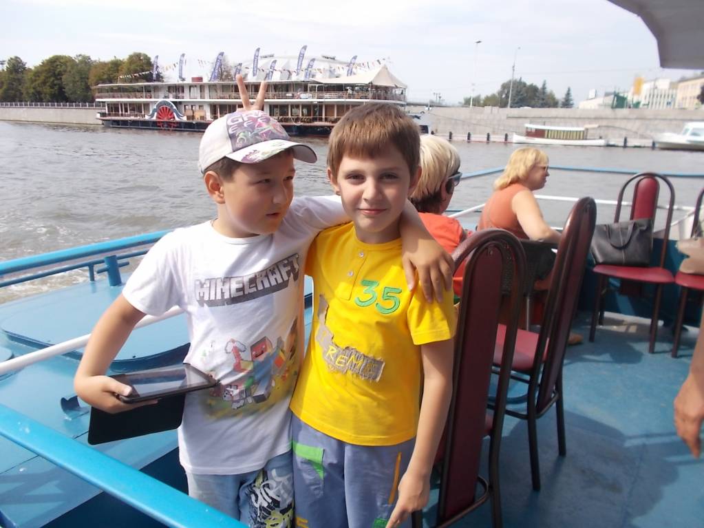 Нам вчера стукнуло 9. Праздновали в Москве. Покатались по Москве-реке на теплоходике - от Киевской до Новоспасского монастыря на Пролетарке, посидели в "Шоколаднице", сходили в "Волшебную лампу" на "Кошку, которая гуляет сама по себе"... В кафе так расслабились, что забыли пакет с подарками: подаренный мною фотик и другом - большой конструктор лего... Вспомнили уже в театре... Пришлось скакать дикими козами назад... Хорошо, не увели.