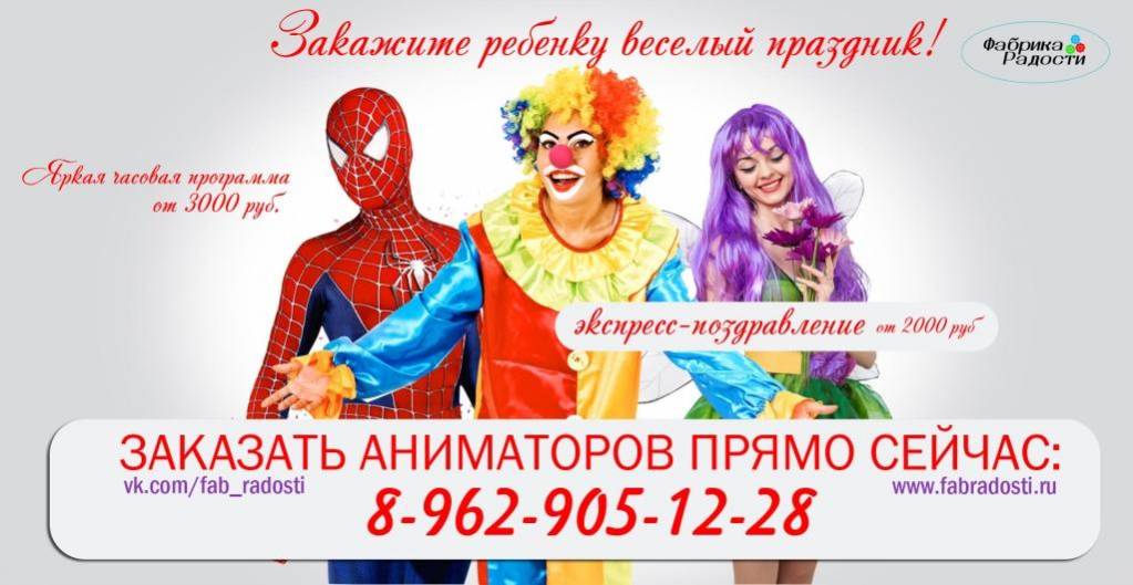 А заказать аниматора вы можете по телефону: 8-962-905-12-28
