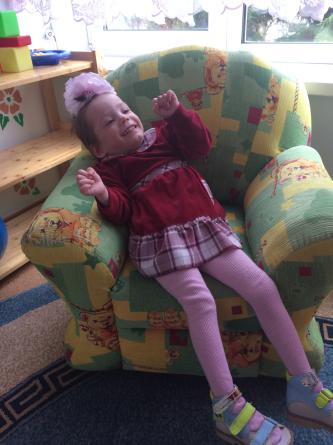Характер: Оля очень эмоциональная девочка с переменчивым настроением. Всегда улыбается при общении со взрослыми. Любит внимание со стороны взрослых.Оля очень любит музыкальные занятия, которые проводят в группе, с интересом наблюдает за другими детьми. Девочка любит прогулки, во время которых проявляет интерес к окружающей природе. Нравится ездить в коляске, радуется любому вниманию и контакту, начинает махать руками и ногами, проявляя таким образом свою радость